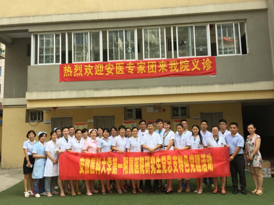 为进一步开展好“两学一做”学习教育,拓展党员社会实践活动,8月15日,研究生党总支冒着酷暑组织部分研究生党员与干部心内科专家一起赴合肥庐阳区杏花社区乐年长者敬老院开展爱心义诊、健康宣教特色党建活动。