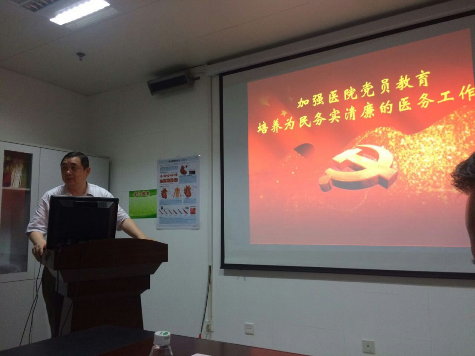 肾内科科主任、安徽省医学会肾脏分会主任委员、博士生导师吴永贵教授,进行了“加强医院党员教育,培养为民务实清廉的医务工作者”党课讲座。