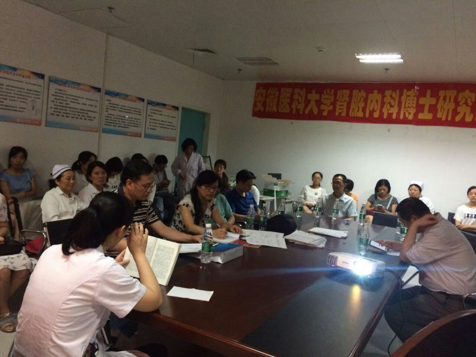 2016年8月18日下午5点30分,内分泌风湿免疫科与肾内科党支部党支部在医院绩溪路肾脏科门诊腹膜透析中心会议室联合召开党员大会,全体党员冒着酷暑参加了会议。会议由两党支部的支部书记赵广碧同志和徐星铭同志共同主持。