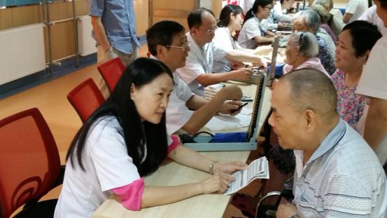干部保健中心13党支部党员同志牢记习近平总书记“不忘初心”教导,以实际行动践行“两学一做”。7月10日上午,党支部组织30余位党员医护人员前往九久夕阳红老年城,举办大型义诊及健康咨询活动。一到九久夕阳红养老院,义诊现场已经排队坐满了前来就诊的老人,党员专家们抵达现场后,迅速开始了义诊,一一详细的对老人进行问诊,认真的体检病人,为患者制定完整的治疗方案,耐心细致的解答老人提出的各种问题;对卧床不起行动不便的老人,医护人员深入老人住处为患者进行精心的诊治;同时还前往住院部病房对疑难危重病人进行会诊,现场进行指导;医护人员还向老人们宣传各种防病健康知识;并向院方赠送了部分药品。此次义诊活动共为100多名老人提供了医疗护理服务,获得九久夕阳红养老院院方及老人们的一致好评。