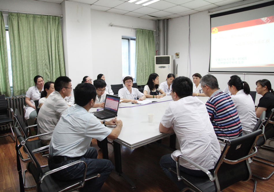 6月17日下午,肿瘤放疗科党支部在西区病房楼一楼召开支部大会,紧扣“两学一做”学习教育主题,学习党课。会议由支部书记杜华主持,全体支部党员参会。