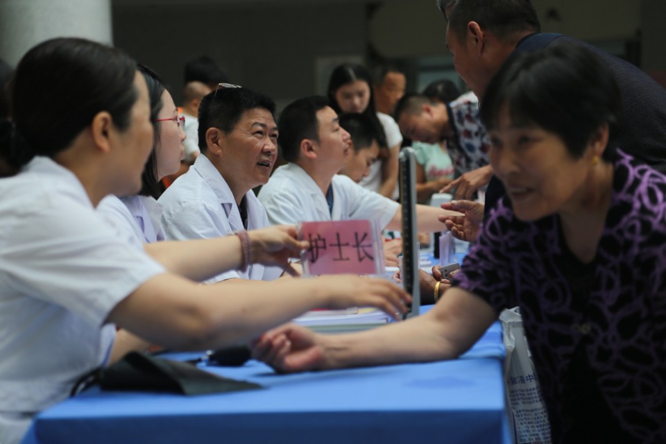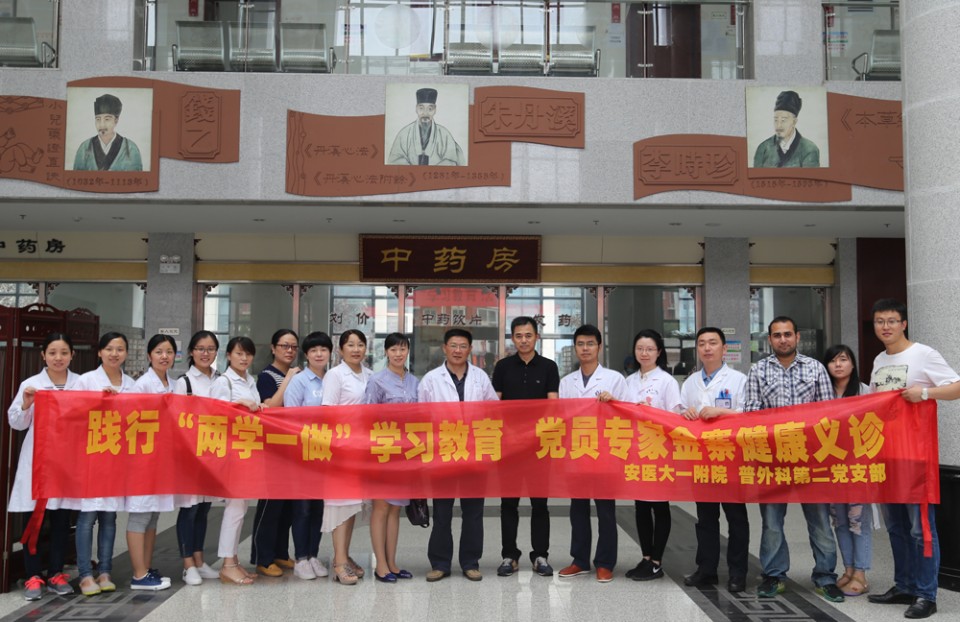 为深入学习贯彻“两学一做”精神,6月26日,普外科第二党支部组织近20位医护人员前往金寨县开展了为期一天的义诊活动。普外科科主任李永翔及乳腺外科王本忠主任带头参加,到达金寨县中医院后,义诊现场已经排队坐满了前来就诊的病人,全体人员立刻投入到工作中。专家们了解患者病情、分析病因,对乳腺疾病患者现场用屏风遮挡,进行体检;对胃肠、乳腺等疾病的成因、预防及治疗进行耐心细致的讲解,按照不同病情提出治疗建议。护理人员向群众宣传各种防病健康知识,并为当地居民测量血压。所有门诊患者看完后,专家们又来到普外科病房,对疑难患者治疗进行现场指导,受到当地医院及患者好评。