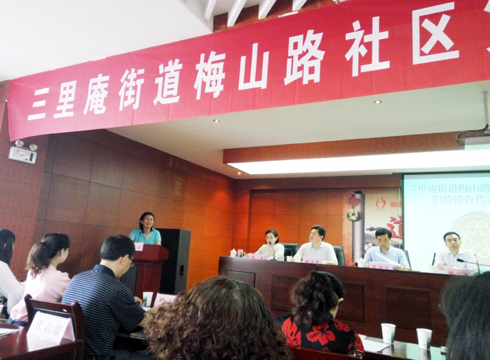 6月7日下午,蜀山区三里庵街道梅山路社区召开第一次归侨侨眷代表大会,并选举产生第一届委员会,我院王爱玲同志当选社区侨联主席,后军、陈熙、赵晟3位同志为社区侨联委员。