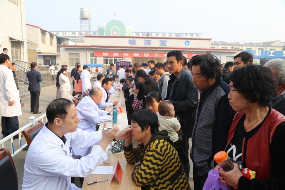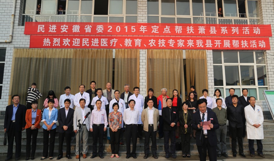 10月17日是国家扶贫日,安医大民进总支10多位医疗专家在全国政协委员、民进省委主委、省教育厅副厅长李和平、安医大统战部部长祖云的带领下,赴国家级贫困县----萧县开展定点帮扶活动。我院的陆地红、刘晓军、王劲、王培光、孔晓春、朱静等多位专家参加了此次活动。10月18日上午,义诊活动在萧县人民医院广场举行。专家们不顾旅途疲劳,利用休息时间,为前来询医问药就诊的近400名群众提供了高效的诊疗和咨询服务,深受当地政府和百姓的热烈欢迎。 (统战科)