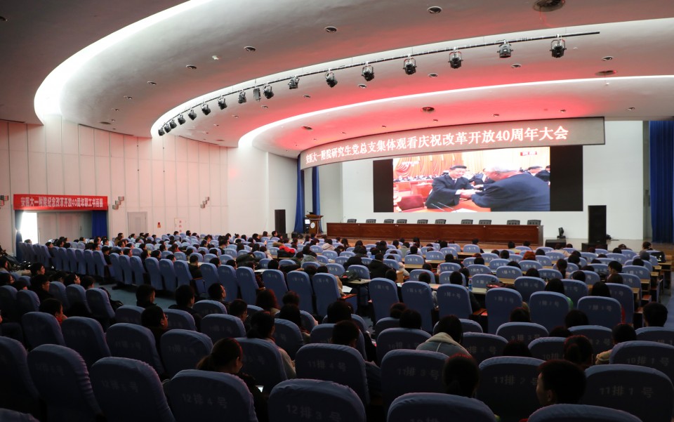 12月18日上午10点,安医大一附院研究生党总支组织300余名研究生在医院会议中心集体收看庆祝中国改革开放四十周年大会直播。