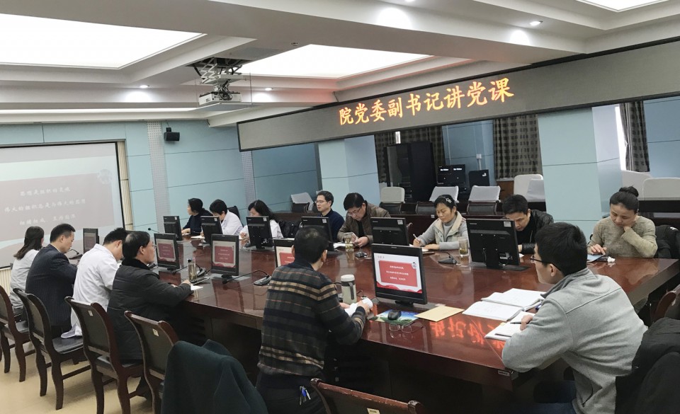 12月29日下午,机关第一党支部在行政楼第二会议室举行党课报告和集中学习会。会上,院党委副书记戴晓支,以《党的指导思想》为题,为所在党支部全体党员讲授党课。会议还集中学习了习近平总书记在庆祝改革开放40周年大会上的重要讲话,以及新修订的《中国共产党支部工作条例(试行)》。院党委书记金宗祥、纪委书记陈宏凯以普通党员身份参加学习。会议由机关第一党支部书记常进主持。戴晓支副书记在党课中,分别详细阐述了毛泽东思想、邓小平理论、“三个代表”重要思想、科学发展观,以及习近平新时代中国特色社会主义思想形成的历史过程、核心问题和重大意义。他指出,党的指导思想是指导我们各项工作的行动指南,是党具有生命力和创造力的灵魂和根本,党在指导思想上能否做到与时俱进,直接决定了党的事业的兴衰成败。最后,就如何贯彻落实好党的指导思想,戴晓支副书记要求与会党员应立足本职工作,并始终牢记党员身份,不断加强政治素养,努力做一名与时俱进的新时代共产党员。