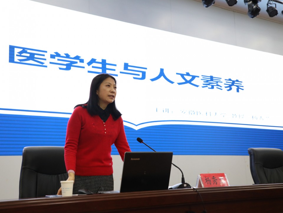 为进一步加强研究生思想政治教育,提高研究生医学人文素养,12月25日下午,研究生党总支在医院会议中心举办医学人文讲座,邀请人文医学学院党总支书记杨秀兰作《医学生与人文素养》专题讲座,近400余名研究生参加。