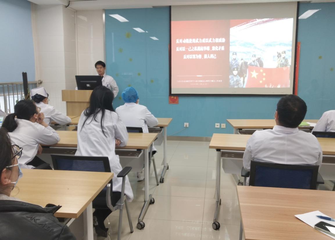 随后,贺小进主任作了《大好河山,寸土不让》的主题党课学习,通过对加勒万河谷中印冲突事件的真实解读,提醒大家和平来之不易,有国才有家,任何时候任何情况下都决不能放弃维护国家正当权益。