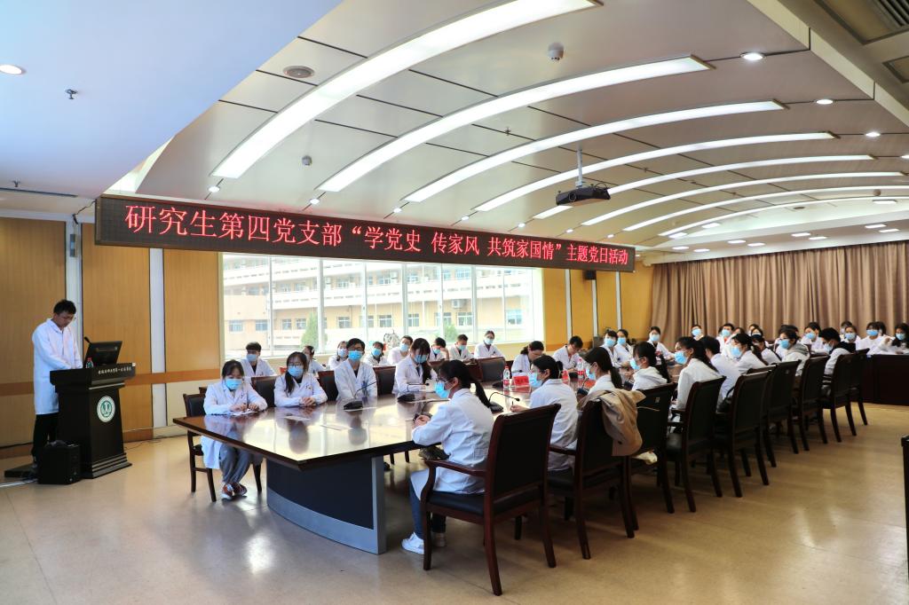 家风是中国传统文化的重要组成部分,也是百年党史中恒久的话题。为深入贯彻落实习近平总书记关于深入学习党史的重要指示精神,弘扬社会主义家庭文明新风尚,奋斗新时代、奋进新征程。4月26日下午,研究生第四党支部在医院干部二楼会议室举行“学党史 传家风 共筑家国情”主题党日活动,研究生党总支赵嘉芸书记全程参与此次活动。