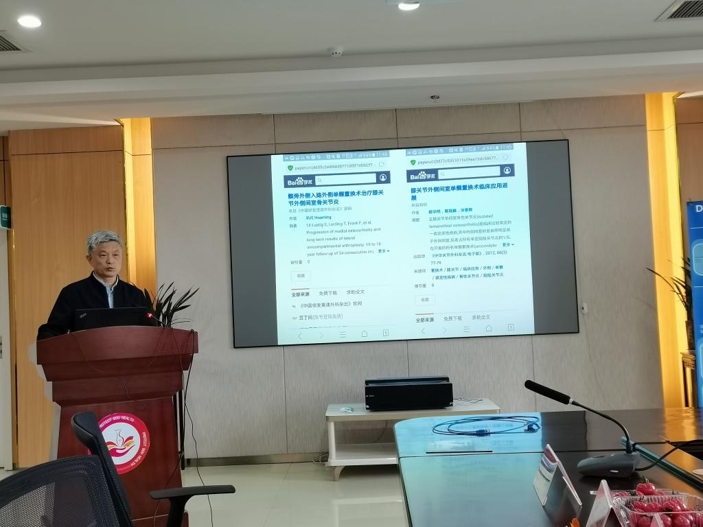 当天下午1点半,在医院门诊三楼的会议室,省内专家与当地医院的骨科医师进行了精彩的学术交流。安医大一附院尹宗生教授、蚌医一附院的周新社主任和泗县人民医院的石少辉院长分别就“膝关节单髁置换的相关问题”、“全膝关节置换的软组织平衡”和“膝关节胫骨高位截骨术”等课题进行了精彩的学术报告,并和当地的医生进行了深入的探讨,获得了良好的效果。