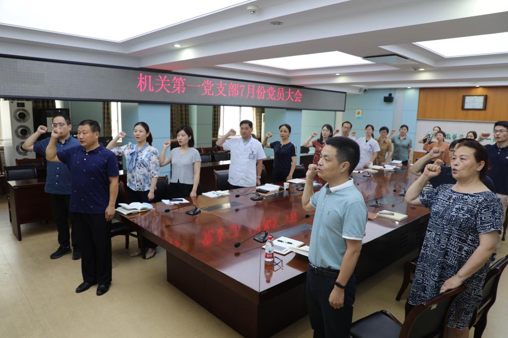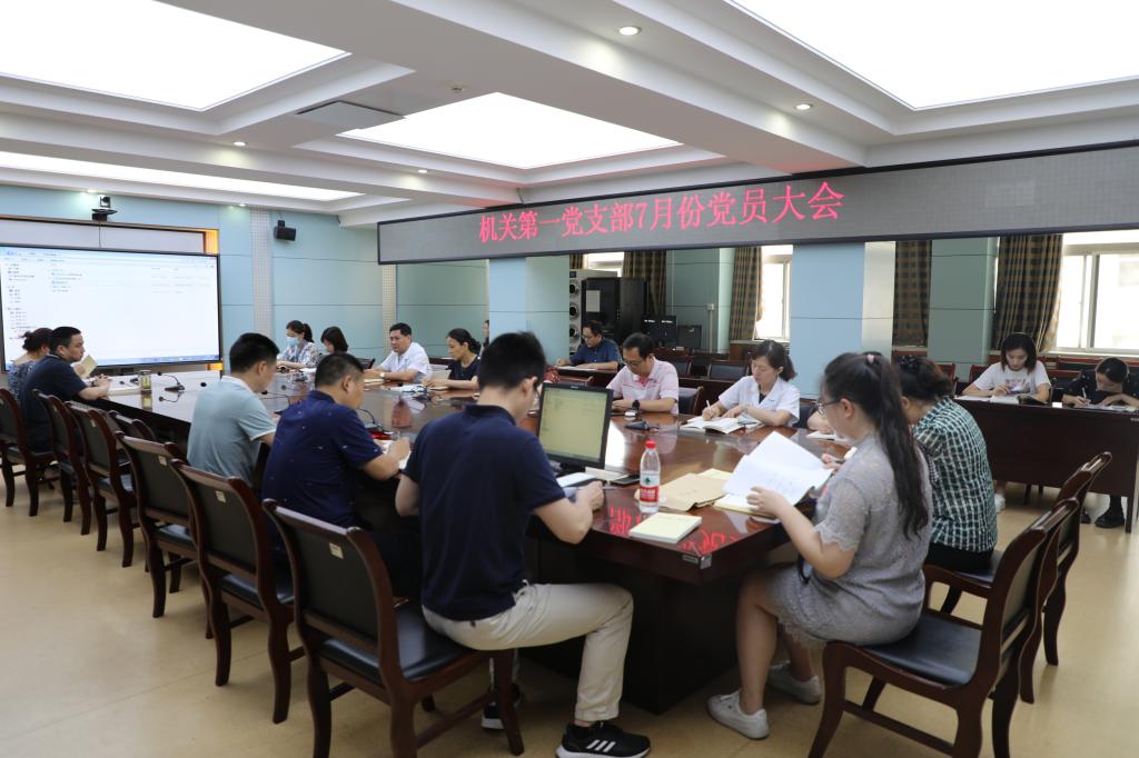 7月9日上午,机关第一党支部在行政楼第二会议室召开7月党员大会并进行集中学习。会议由支部书记常进主持。