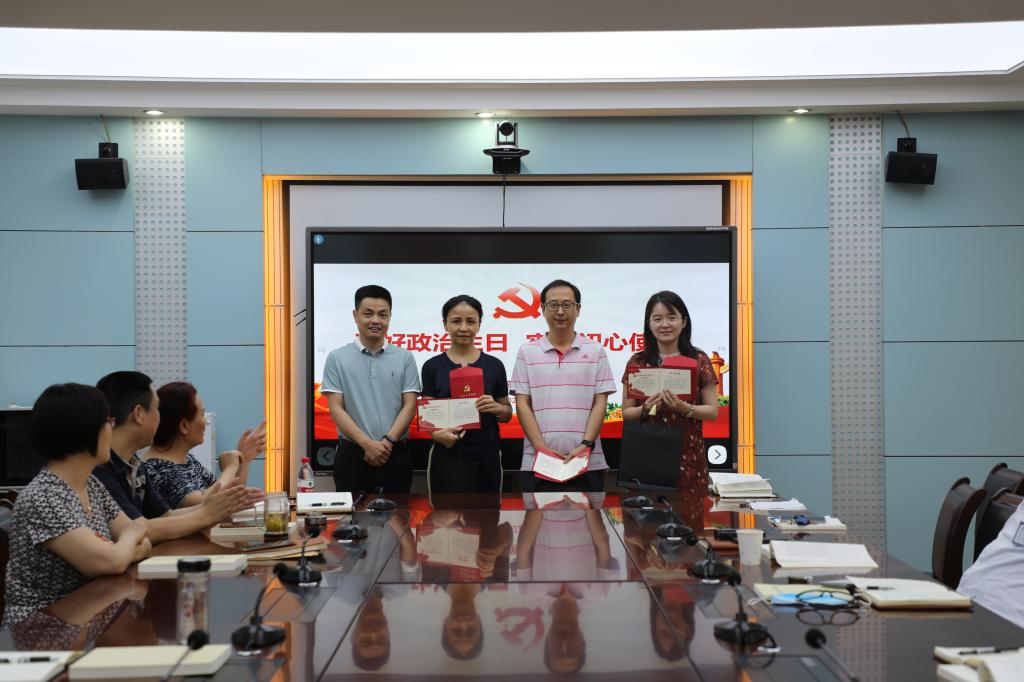 本次会议,机关第一党支部继续开展了“过好政治生日、牢记初心使命”特色党建活动。常进代表党支部向过“政治生日”的党员表示祝贺,并向他们送上支部精心准备的贺卡和纪念品。支部党员在徐能寿的带领下共同举起右手,重温入党誓词。