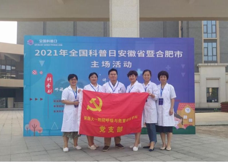 9月11日,2021年全国科普日安徽省暨合肥市主场活动在合肥四中举行,围绕着“百年再出发,迈向高水平科技自立自强”的主题,为广大市民献上了一场丰盛的科普盛宴。呼吸内科党支部践行学党史、办实事的要求,积极参与本次科普活动。
