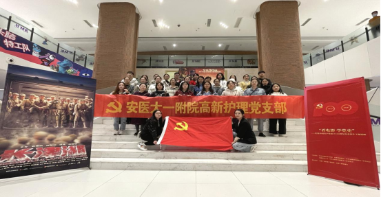 接着,党支部组织党员同志于10月16、17日晚分批次观看《长津湖》影片开展爱国主义教育主题党日活动,《长津湖》影片以抗美援朝战争中的长津湖战役为背景,讲述71年前中国人民志愿军在极寒严酷环境下,凭着钢铁意志和英勇无畏的战斗精神,殊死拼搏、奋勇杀敌,打退了美军最精锐的王牌部队,一举扭转了战场态势,彻底粉碎了美军圣诞节前占领整个朝鲜的美梦,还原了战争的残酷,展现了中国人民解放军在抗美援朝战争中英勇无畏的精神。观影结束后,同志们纷纷感慨,如今的幸福生活来之不易,是革命先辈用生命和鲜血换来的,我们必将铭记历史,缅怀革命先烈,继承发扬抗美援朝精神,高举爱国主义旗帜。作为一名党员,加强学习提高党性修养,坚定不移地坚持党的领导,坚定理想信念,牢记初心和使命;作为一名护理人,努力提升专业水平,以饱满的姿态投入护理事业中,不断提高优质护理服务内涵,为推进医院高质量发展贡献力量。