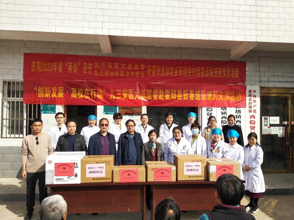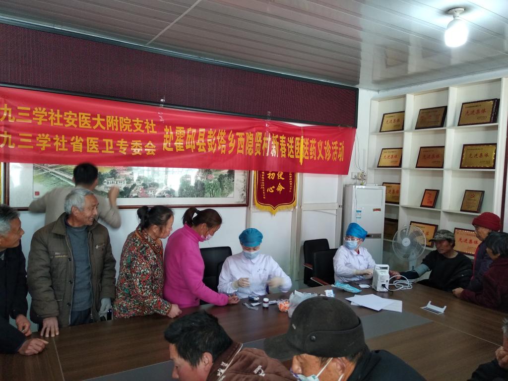 为响应国家卫健委“健康中国 医者先行”倡导,3月5日,恰逢学雷锋纪念日和全国两会召开期间,由省政府参事室、省九三学社医卫专委会、九三学社安医大基层委和安医附院支社联合开展的新春义诊送药到基层活动在霍邱县彭塔乡西隐贤村举行。