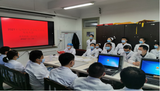 支部书记符敏首先带领大家一起学习《中国共产党组织建设一百年》,了解中国共产党的百年发展史;接着传达院党组字【2022】6号文《关于组织召开2021年度组织生活会和开展民主评议党员的通知》,随后代表支委班子向全体支部党员做2021年工作情况总结汇报,并开展了批评和自我批评。针对支部2021年的工作情况分析检查存在的不足,提出合理化的建议和意见。党员同志们对照要求,本着知无不言、言无不尽,有则改之、无则加勉的态度,从政治学习、临床、教学、科研、生活等各个方面做出了深入剖析,大家热烈讨论、畅所欲言,认真查找工作中存在的问题和不足,积极开展批评与自我批评,真正做到开诚布公、坦诚相见。