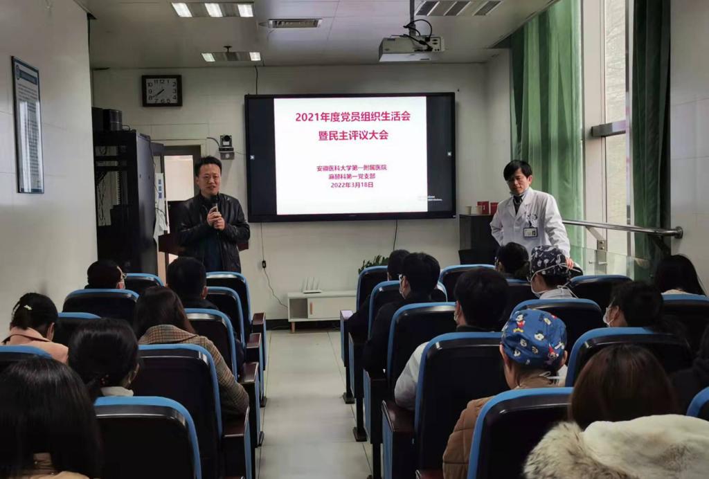 3月18日上午,麻醉科第一党支部在外科一号楼5楼麻醉科会议室召开2021年度组织生活会暨民主评议党员大会。本次组织生活会由麻醉科党支部支部书记刘学胜主持,外科党总支书记胡先平同志参加本次会议。