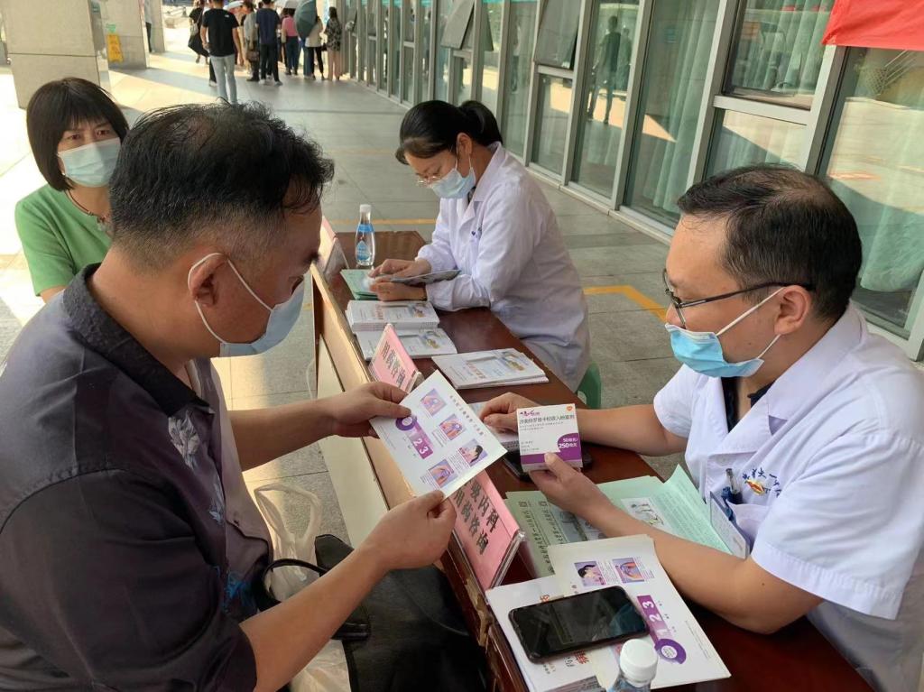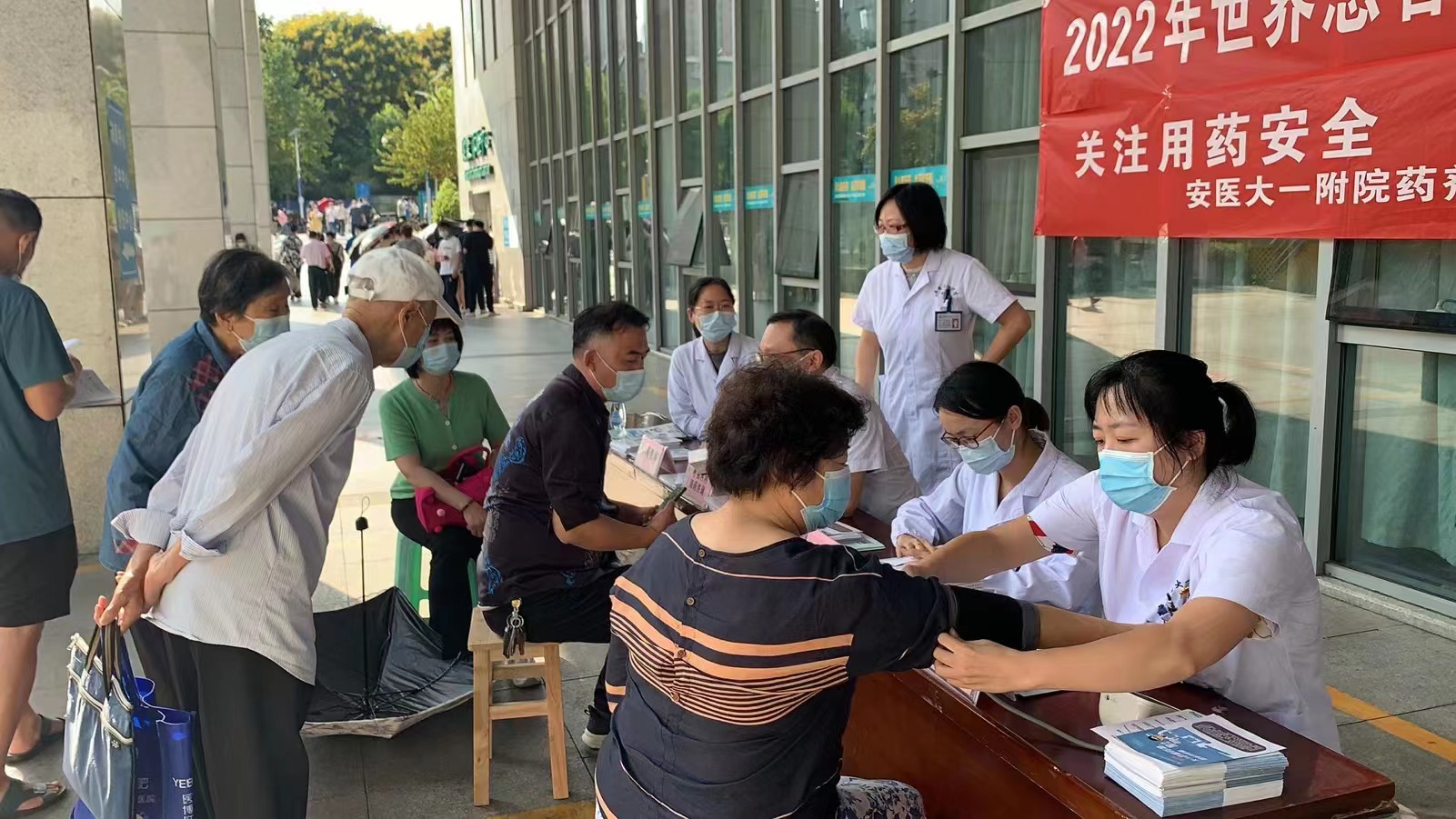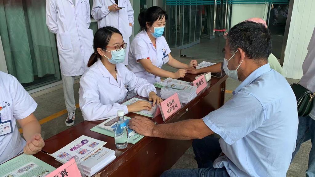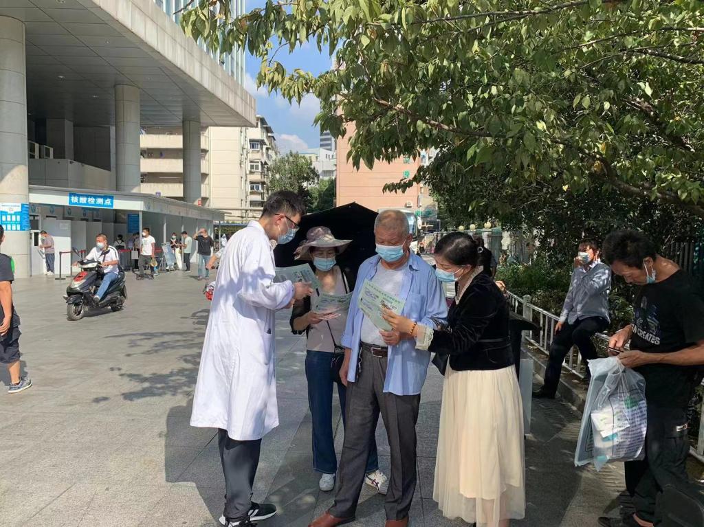 9月16日下午,在药剂科第一党支部支部书记高昌琨、药剂科主任夏泉的带领下,药剂科第一、第二党支部的党员、药师在绩溪路门诊广场联合开展了“关注用药安全避免用药伤害”为主题的义诊活动。在整个义诊活动中,有工作人员为患者提供免费测量血压的服务,还有四位专科临床药师还充分发挥自身专业特长,与患者面对面交流,普及安全用药知识,就患者用药的相关问题提供了详细、专业、全方位的个体化用药指导。在义诊现场,工作人员还向在场的患者免费发放了《高血压用药》、《病毒性肝炎用药》、《糖尿病用药》等药学知识科普书籍及多种合理用药的宣传彩页,达到了科普宣传的效果,受到了患者和家属的一致好评。