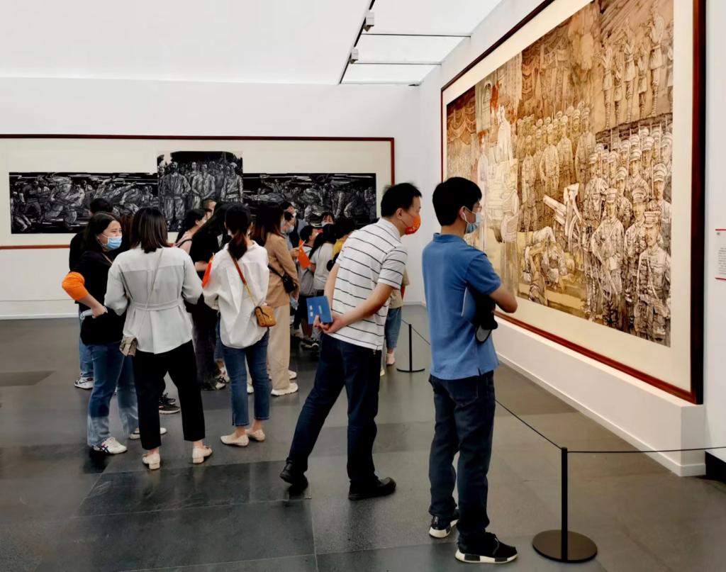 在讲解员的引导下,党员们参观了“安徽省重大历史题材美术作品展”、“安徽省现代名家美术作品展”、“韩美林艺术展”等近10个主题展览。尤其是在“安徽省重大历史题材美术作品展”的参观给广大党员留下了深刻的印象。不同历史时期的重大事件、重要场景和杰出人物被美术工作者们以多种形式(国画、油画、版画、雕塑等)的美学作品表现出来。通过此次参观学习,广大党员同志对安徽省近、现代发生的重大历史事件和安徽省所涌现出的引领潮流的历史人物有了更多、更深入的了解,也进一步激发了大家的爱国热情和自豪感。