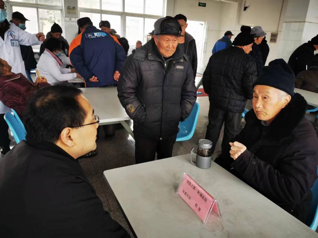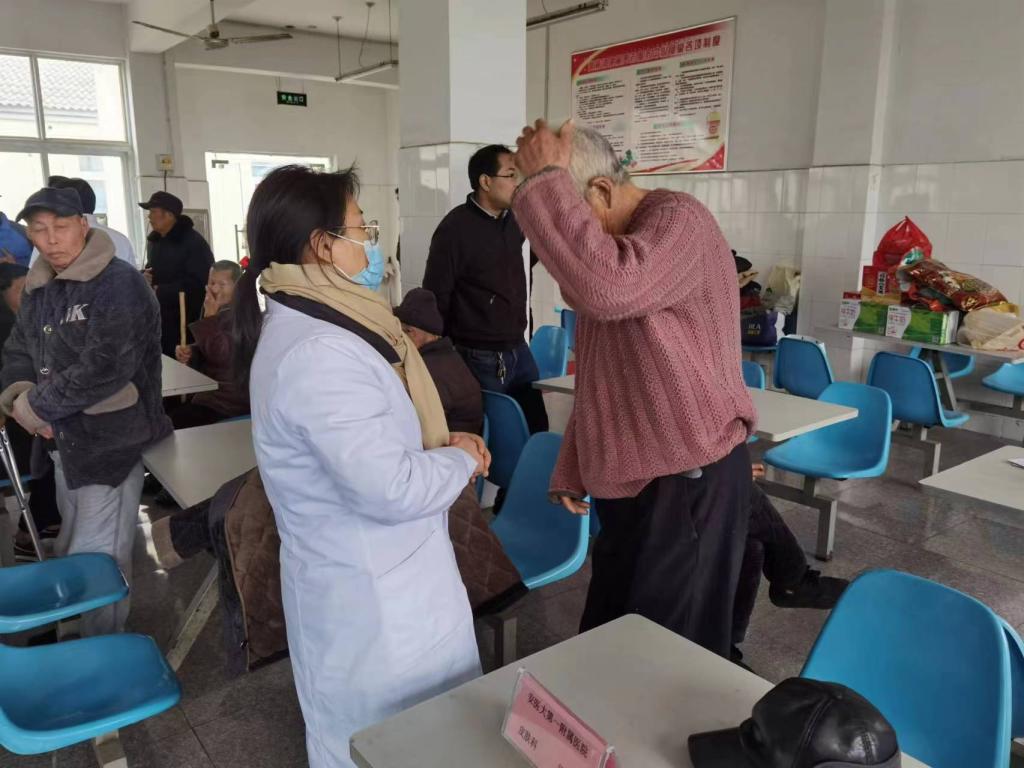 随后,大家又来到黄麓镇养老服务中心慰问,给老人们送去牛奶、饼干、冬季衣服,了解他们的身体健康状况和生活情况,对30多名老年人进行体检并一对一健康咨询。