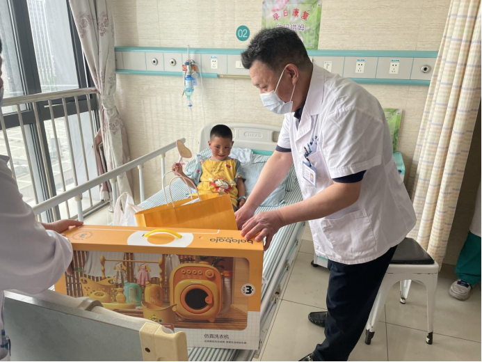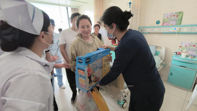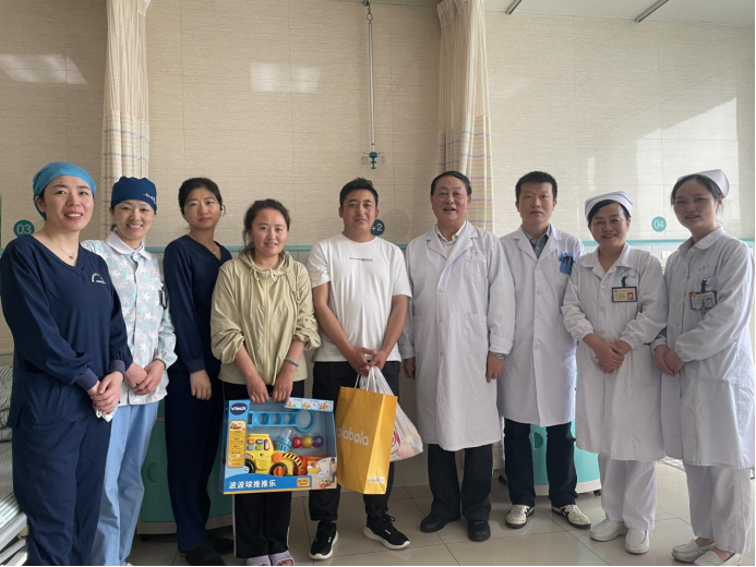4月18日下午,心脏大血管外科党支部书记林敏、心脏大血管外科主任葛圣林带领党员同志和入党积极分子慰问西藏先心病患儿。一行人来到病区看望了术后回到病房的小患者,同时给孩子们送上了爱心礼物。