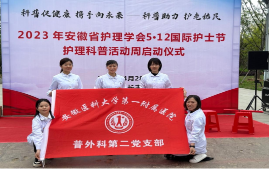 4月28日上午,普外科第二党支部部分护士党员到安徽省合肥市长丰县金湖公园,以开展灾害护理健康科普教育活动的方式,充分把学习贯彻党的二十大精神活动落到实处。