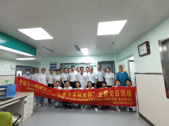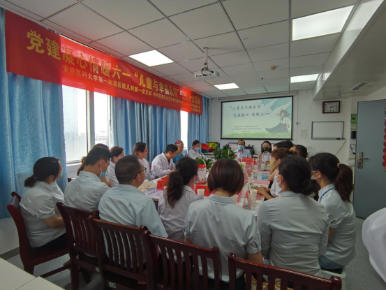 为深入学习贯彻习近平新时代中国特色社会主义思想主题教育,切实际开展好“我为群众办实事”实践活动,以党建引领为载体,发挥基层党组织战斗堡垒作用和党员先锋模范作用,在第73个“六一”国际儿童节来临之际,5月31日下午,安徽医科大学第一附属医院儿科第一党支部携手安徽民航蓝天旅行服务有限公司机关党支部及航食党支部开展“儿童与幸福永存”主题党日活动,弘扬奉献、友爱、互相进步的志愿精神,走入临床儿童重症一线,为这些特殊的天使们献上爱心,送上节日的祝福及真切的关怀。