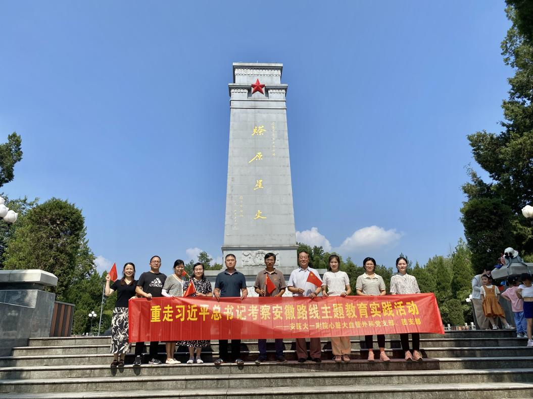 9月9日,为深入学习贯彻习近平新时代中国特色社会主义思想主题教育,心脏大血管外科党支部组织党员开展“重走习近平总书记考察安徽路线”主题教育实践活动,在党支部书记林敏同志的带领下来到了具有“红军的摇篮、将军的故乡”美誉的金寨,实地感受红色革命文化底蕴,牢记初心使命、赓续红色基因。