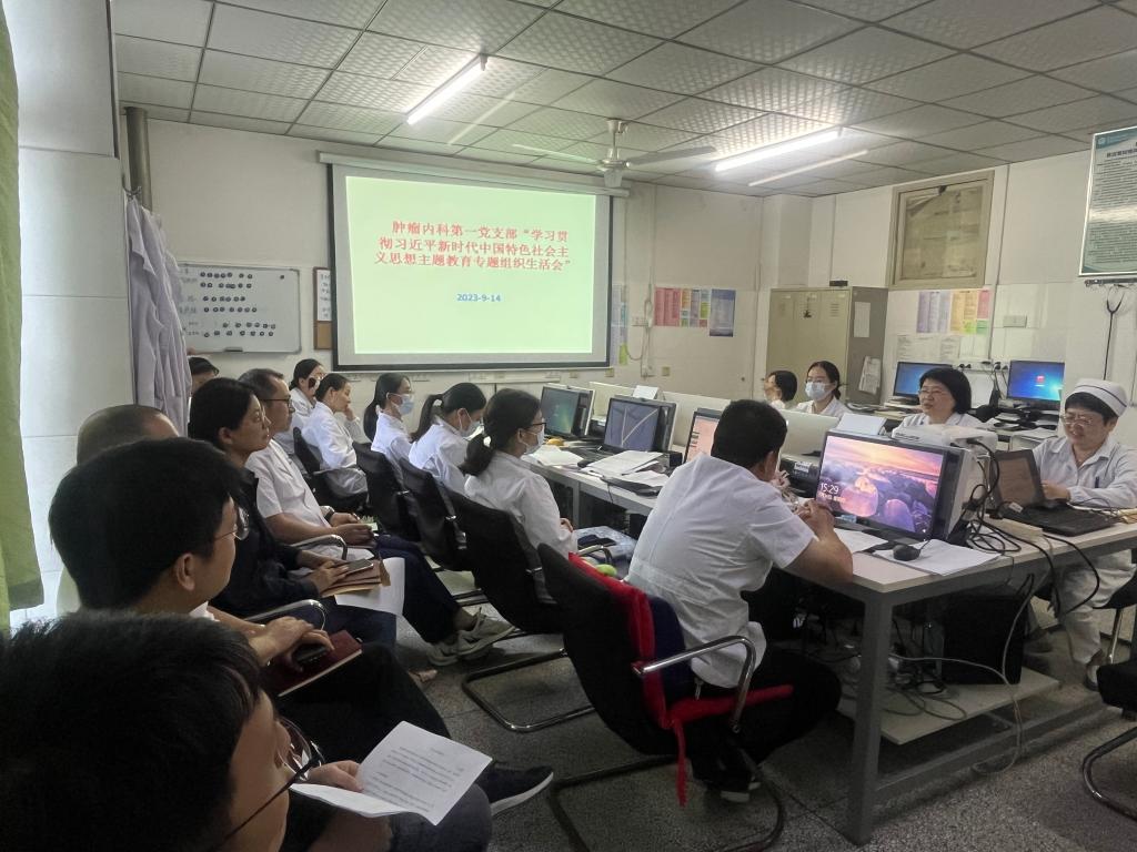 按照医院党委统一部署要求,9月14日下午,肿瘤内科第一党支部在医生办公室召开学习贯彻习近平新时代中国特色社会主义思想主题教育专题组织生活会。会议由支部书记郝吉庆主持,肿瘤内科第一党支部全体支委委员及党员参加会议。
