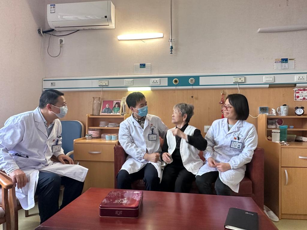 来自营养科、心理科、感染科、心内科、内分泌科、神经内科和病理科的专家们为护理院老人们提供优质的医疗义诊服务活动。专家们通过详细询问日常表现、既往病史,用药情况、健康查体等常规检查,耐心细致地解答他们的健康咨询并给出相应建议。此外,医技综合党支部书记徐洪海带领专家们走访了1位百岁老人和2位抗美援朝老兵,与老人们亲切交谈,提醒他们充分认识自身的健康状况,保持良好的生活习惯,降低常见病的发生率。护理院的老人们深切感受到来自医务人员的关爱和温暖,纷纷为医务人员点赞。