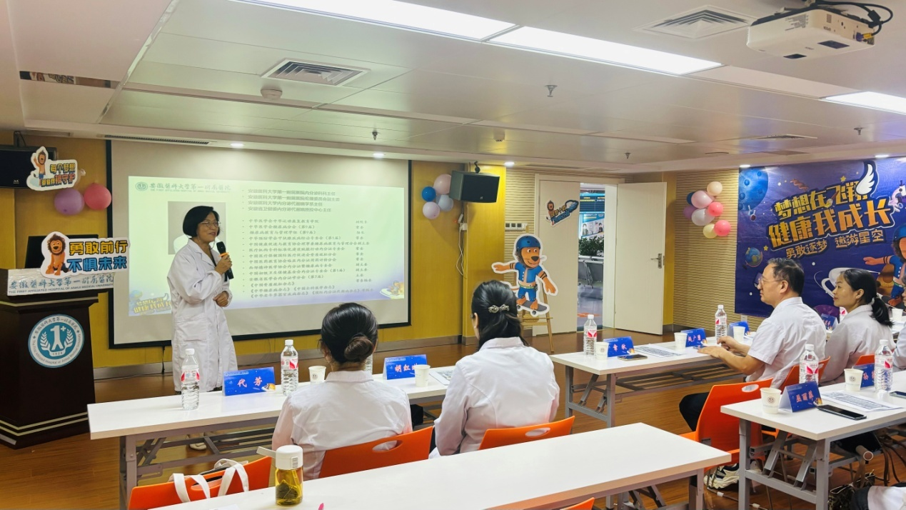 7月14日,由内分泌科党支部和儿科党支部联合举办的第七届1型糖友夏令营在长江路门诊大楼11楼开营,本次夏令营以“梦想在飞翔,健康我成长”为主题,旨在为1型糖尿病儿童及家长精心构建一个交流学习的平台,帮助患儿和家长学习如何在日常活动中做好饮食运动以及并发症的应对,更科学、更健康的管理糖尿病。来自合肥及周边城市十几名糖尿病青少年儿童及其家长参与了本次夏令营。