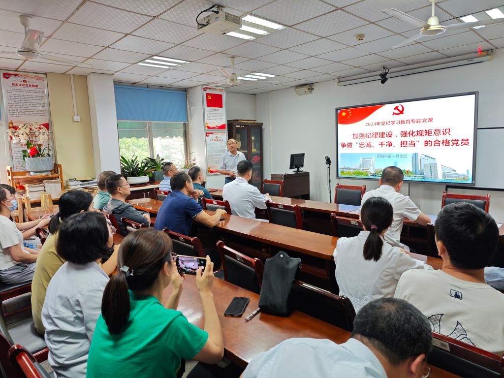 8月20日下午,院党委委员、总会计师谢峰赴药剂科党支部活动室,为药剂科第一党支部全体党员讲授党纪学习教育专题党课。