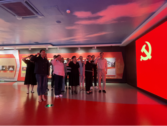 参观最后,全体党员还重温了入党誓词,面对鲜红的党旗,大家庄严宣誓,表达了不忘初心、牢记使命,永葆共产党人政治本色的坚定信念。