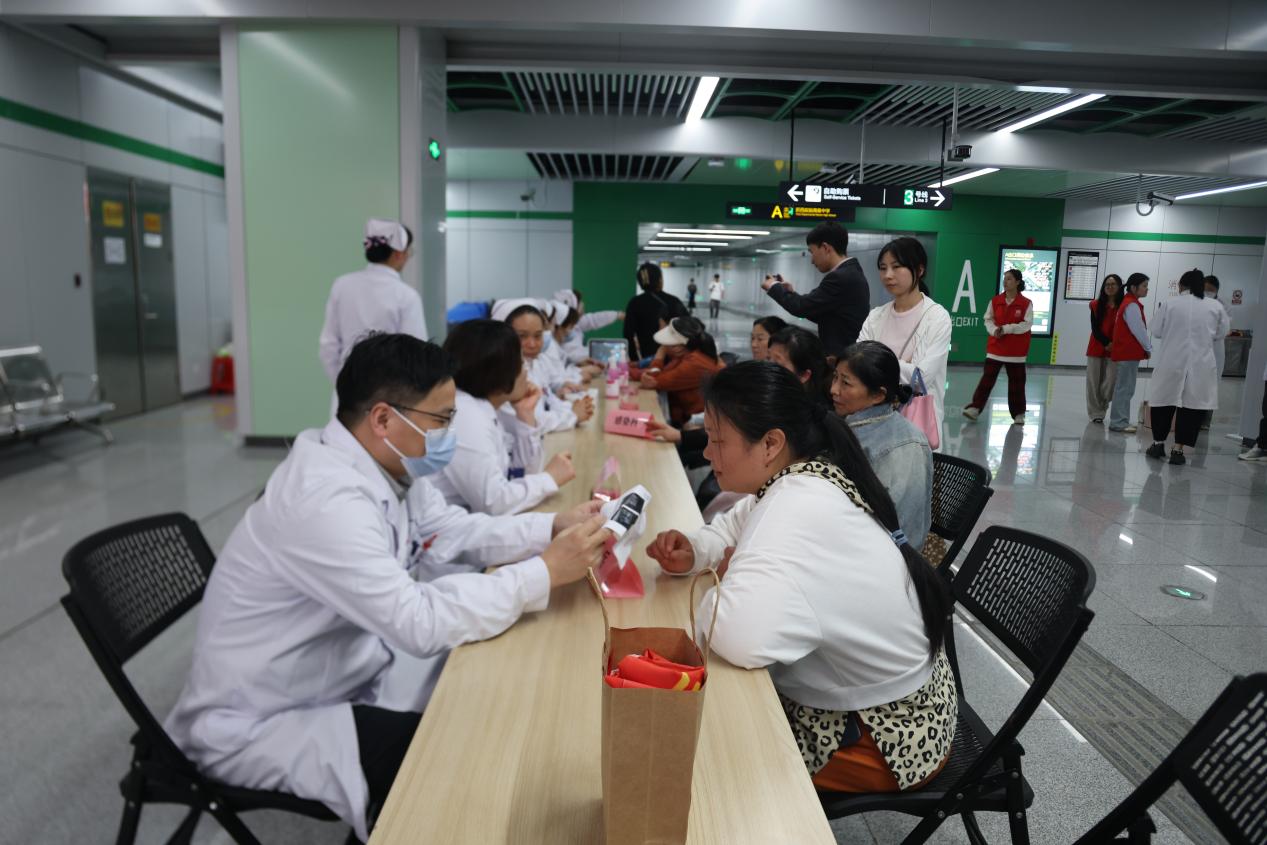 活动现场,地铁站的一角被布置成温馨的义诊区域,医务人员用通俗易懂的语言与每一位前来诊治和咨询的群众交流,并向他们普及常见疾病的预防和保健知识,现场还开展了测量血压、心电监测等医疗服务。
