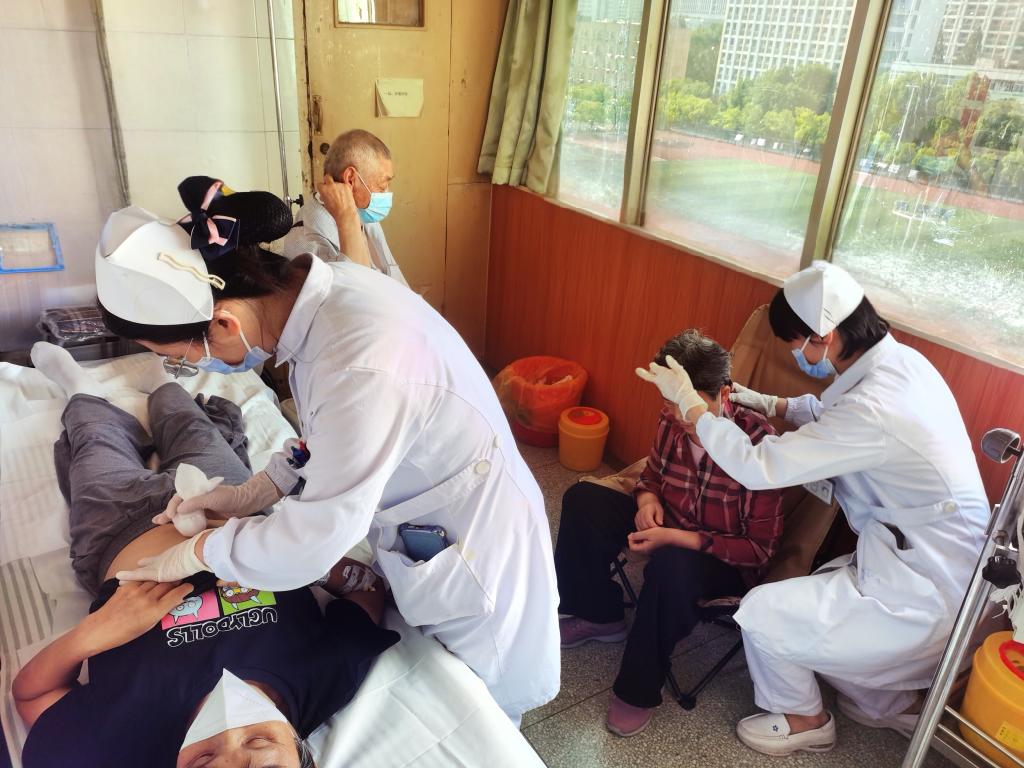 血液内科主任兼党支部书记葛健围绕饮食调理、心理疏导等方面阐述科室医护团队的特色诊疗和实践。血液内科三病区护士长姚素玉则以人文护理理念为切入点,结合护理中的温情点滴,生动诠释优质护理服务的深刻内涵。血液内科三病区副主任医师黄震琪风趣幽默的解析疾病治疗概要与注意事项。副主任护师刘林燕为患者及家属开展科普讲座《滚蛋疗法》,生动形象的讲述滚蛋疗法简、廉、便、优的操作特点。主管护师韩归与护师朱迎春通过“滚蛋疗法体验坊”引导患者及家属在实践操作中感受滚蛋疗法的魅力,以沉浸式体验方式感受中国传统文化的精髓。