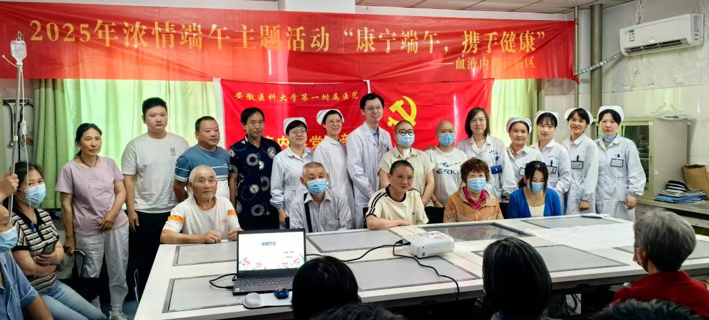 5月29日下午,为深入贯彻落实党的二十大精神,赓续中华优秀传统文化,践行“十个一”的服务理念,改善住院患者就医感受,加强医护患的沟通,血液内科三病区以端午节为载体,举办主题为“康宁端午,携手健康”系列活动。