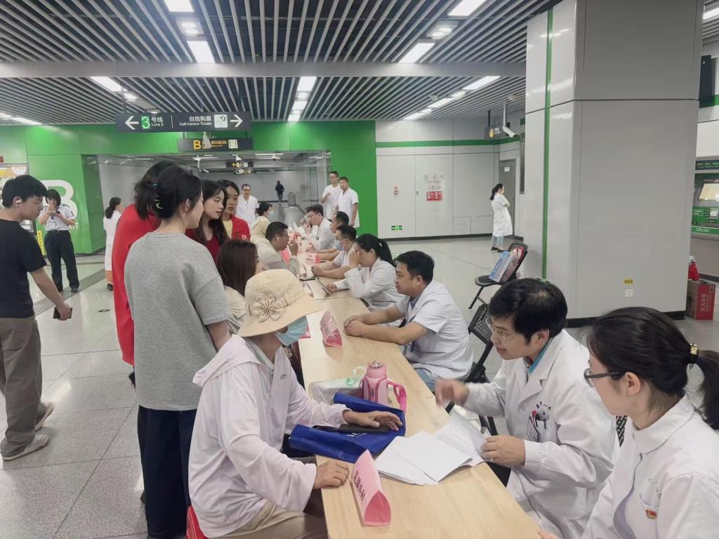 6月12日下午,南区联合合肥轨道交通幸福坝区域站 在安大磬苑校区地铁站举行“医心向党践初心,义诊惠民担使命”健康义诊活动。