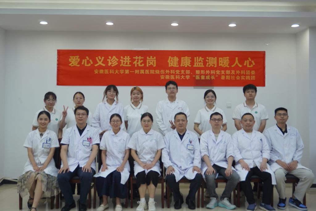 8月3日上午,烧伤科党支部联合整形外科党支部、南区内科第二党支部及外科团委与第一临床医学院“医童成长”暑期社会实践团赴肥西县花岗镇董岗社区开展党团员下乡义诊及健康监测活动。
