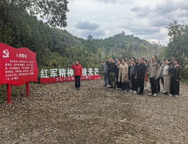 医疗服务结束后,全体党员前往祁门县红色教育基地开展党性教育。大家怀着崇敬之心瞻仰革命旧址,在珍贵的历史图片、文献资料与实物展品前驻足凝视,认真聆听“土佬”汪振丰不畏艰险、筹粮送情报、严守革命秘密的英雄事迹,深刻感悟革命先辈坚定的理想信念、无私的奉献精神与忠诚的政治品格。一段段峥嵘岁月、一个个感人故事,让在场党员接受了一场深刻的精神洗礼,进一步筑牢信仰之基、补足精神之钙。