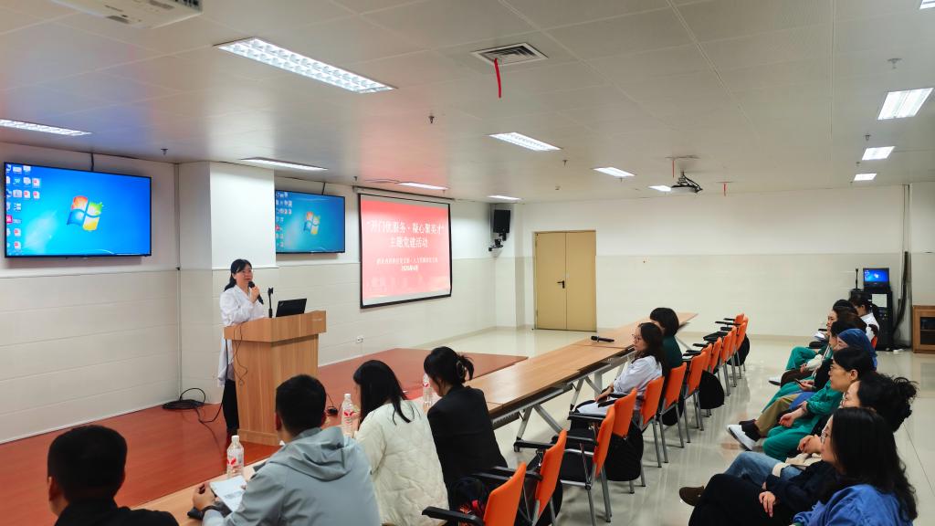 政策分享环节,人才服务办公室主任盛吉莉围绕人才项目申报工作,重点介绍了各类人才项目的申报类别、明确了不同项目对应的申报对象,让参会党员清晰知晓各类项目的适用范围。岗位职称办公室主任陈晓云聚焦职称工作,围绕医护人员入职后全周期职业发展,讲解了职业成长各阶段的重要节点及对应工作内容,为一线医护人员规划职业发展路径、做好各节点工作提供了清晰指引。