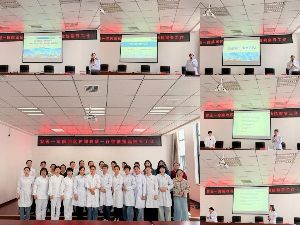 丁金霞解读2025年我院牵头成功发布的安徽省地方标准《癌症疼痛评估规范》,为癌痛规范化护理提供理论指导;静疗专科护士汪克玲主管护师分享 PICC 置管新技术,总带教老师李雅文讲解输液港标准化维护要点。在“专家面对面” 环节,潘玉芹、吴秀玲两位静疗资深专家针对基层护理常见问题现场解析、示范指导。最后,全体人员走进肿瘤科病房开展疼痛评估与护理查房,推动理论知识转化为临床实操能力。