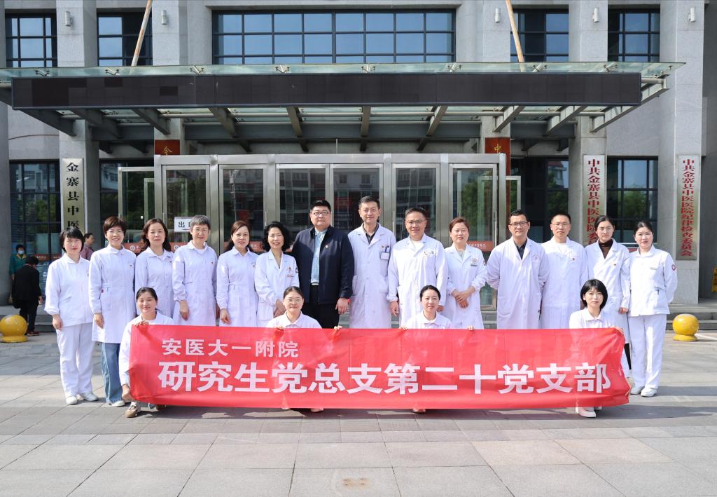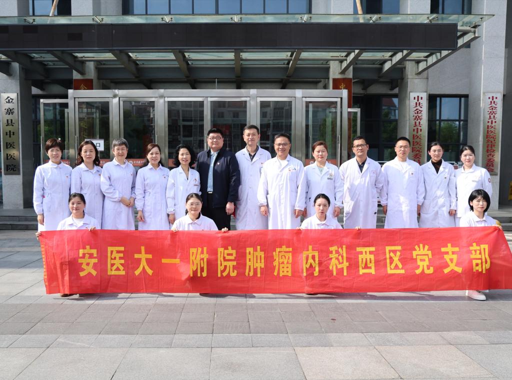 为深入推进优质医疗资源下沉,以党建为纽带搭建省域优质医疗服务桥梁,切实提升革命老区肿瘤防治水平,强化医德诚信建设,4月18日,我院肿瘤内科西区党支部、研究生第二十党支部联合金寨县中医院肿瘤内科开展“党建铸魂守初心 医德诚信优服务”系列义诊暨全国肿瘤防治宣传周活动。本次活动采用“医疗 + 护理”双专场形式,将省级优质医疗服务送到老区群众家门口。