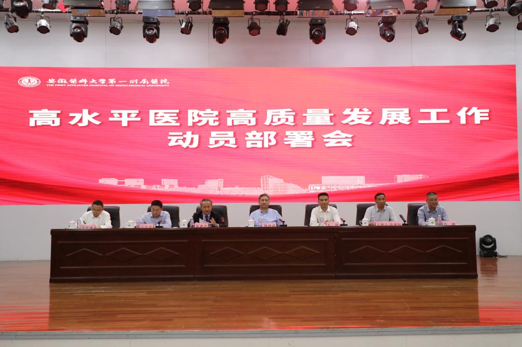 4月30日下午,医院在内科医技楼四楼会议中心召开高水平医院高质量发展工作动员部署会。安徽省卫生健康委党组成员、副主任杨绪斌,安徽医科大学党委书记王琦、校长翁建平,校党委副书记、院党委书记徐朝阳,院长孙倍成出席会议。会议由徐朝阳主持。