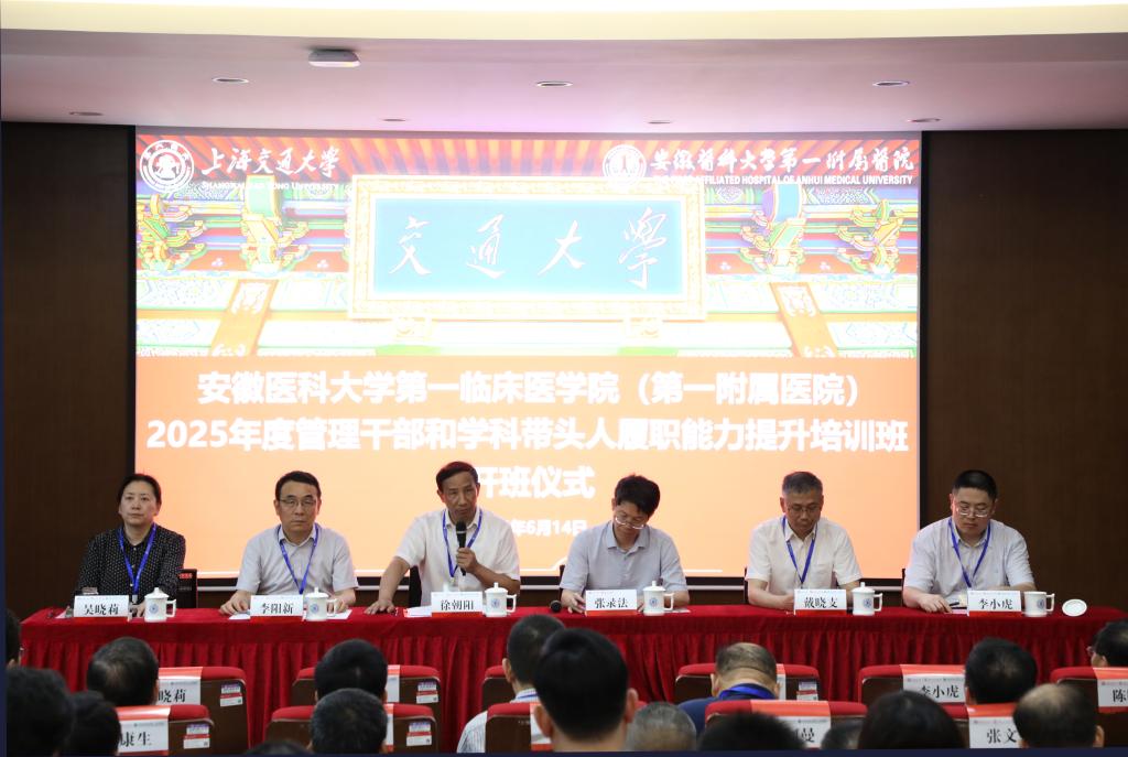 开班式上,徐朝阳指出,举办2025年度管理干部和学科带头人履职能力提升培训班,既是医院党委贯彻落实党中央关于加强干部能力建设的重要部署,也是推动医院高质量发展的重要举措。为确保培训取得实效,徐朝阳提出三点要求:一是提高站位,以党性锤炼筑牢思想根基。全体学员要将党性教育贯穿学习全过程,深化理论武装,增强政治判断力、政治领悟力、政治执行力,推动党建与业务深度融合,将学习成效转化为推动医院高质量发展的实际动能。二是聚焦重点,以学以致用破解发展难题。要带着问题学、联系实际悟,借助长三角优质资源,在现代医院管理制度、学科建设、精细化管理、意识形态与网络安全等方面碰撞思想,探索符合医院实际的创新路径。三是严守纪律,以优良作风展现安医形象。要严格遵守中央八项规定精神和培训纪律,做好全程管理,确保学习安全高效有序,展现严谨务实、追求卓越的精神风貌。