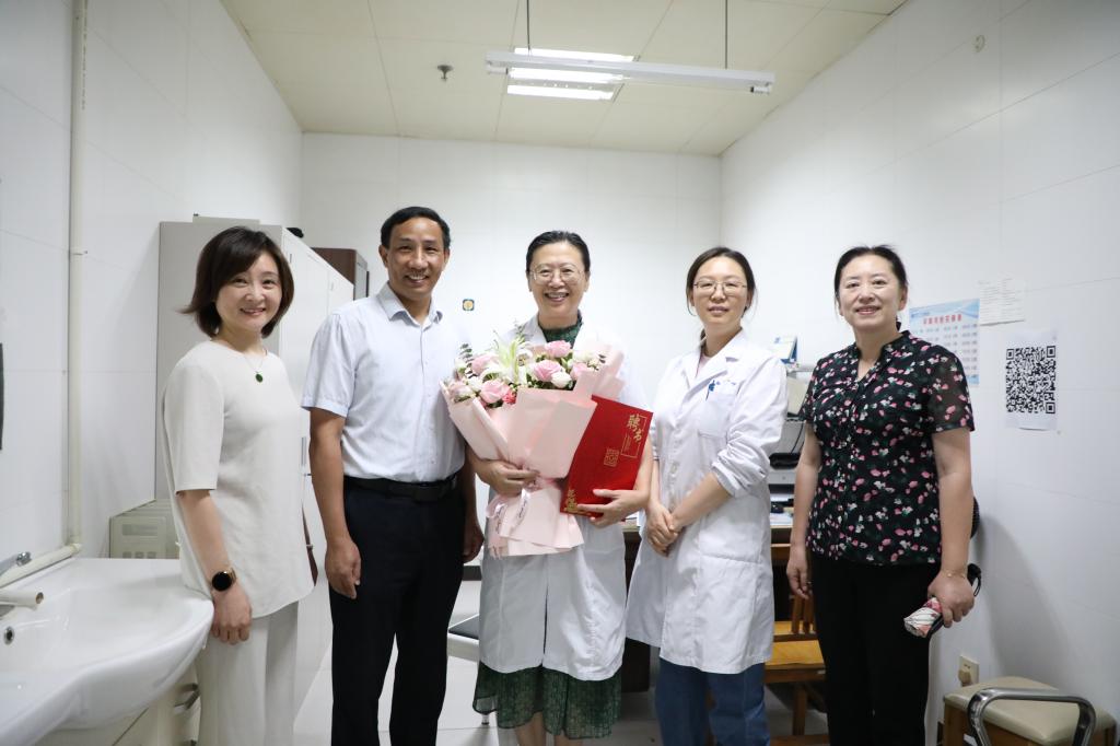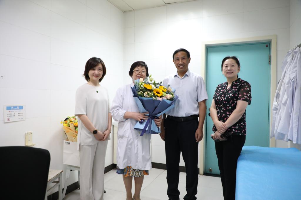 为弘扬教育家精神,营造尊师重教浓厚氛围,在第41个教师节来临之际,校党委副书记、院党委书记徐朝阳,院党委委员、南区党委书记吴晓莉一行深入临床教学一线,走访慰问正在岗位上辛勤工作的教师代表,向他们送上鲜花和节日的祝福,并通过他们向全院教育教学工作者致以诚挚问候和崇高敬意。