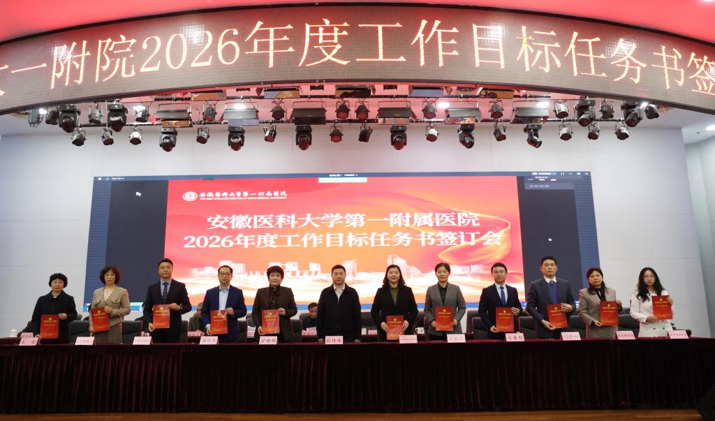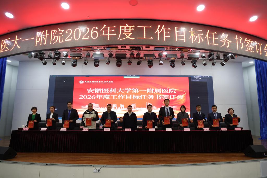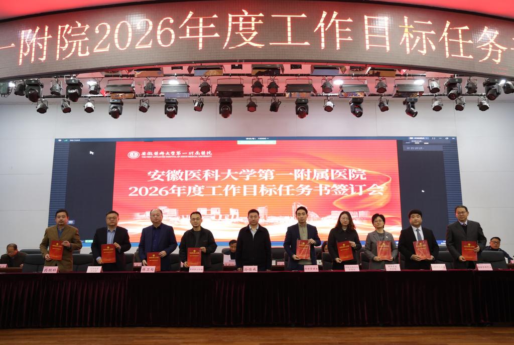 3月4日下午,医院在绩溪路院区内科医技楼四楼会议中心召开2026年度工作目标任务书签订会,在院院领导班子成员出席会议,会议由党委副书记、副院长李阳新主持。