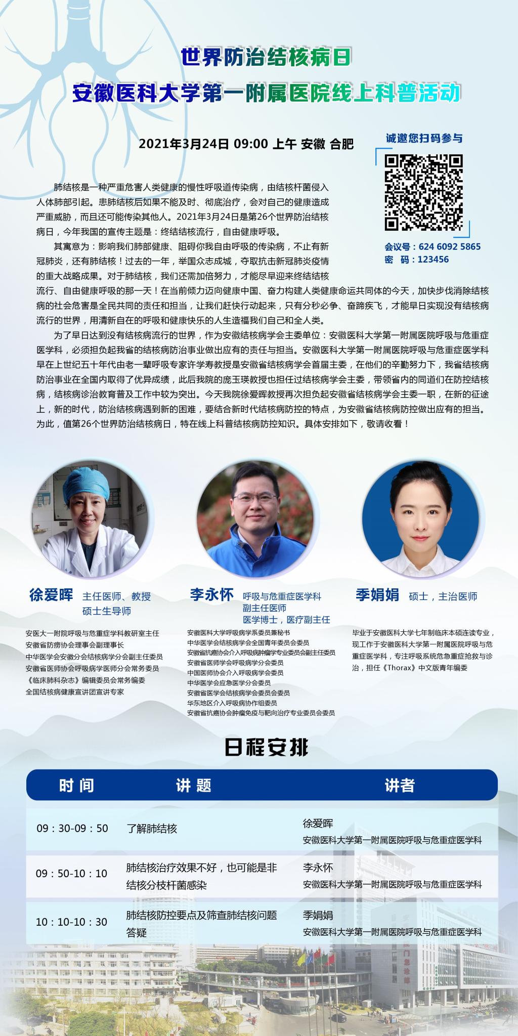 此次线上科普宣教活动,旨在进一步普及结核病防控知识,提高公众对结核病的认知水平和防病意识,呼吁全社会高度关注结核病防治,通过全社会的共同努力,尽早实现“终结结核流行”,终还人类“自由健康呼吸”。