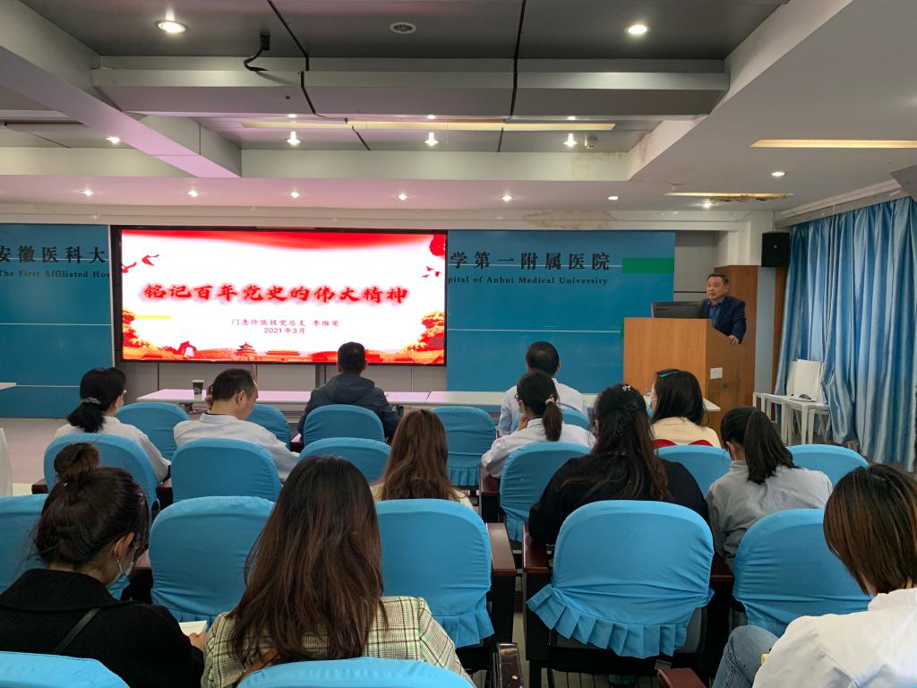 4月15日下午,药剂科第一、二党支部联合在实验中心楼六楼会议室开展党史学习教育,门急诊医技党总支书记李维荣为全体党员上党课。