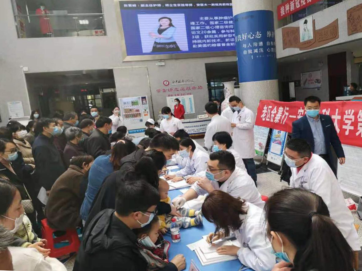 为深入贯彻习近平总书记在党史学习教育动员大会上的重要讲话精神,扎实开展好党史学习教育,践行为人民服务的理念,4月18日,普外科高新党支部、儿科第二党支部、药剂科第三党支部、生殖中心党支部、心血管内科第二党支部、手术室高新党支部代表共28名党员赴革命老区金寨县开展义诊和指导交流活动。