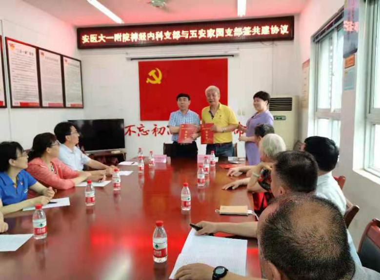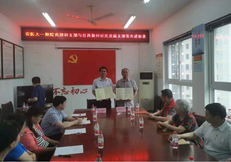 义诊活动结束后,两支部分别与岳西新村社区五安家园党支部、直属党支部进行了基层党组织党建交流与共建座谈会,分享了党史学习教育及基层党支部标准化建设经验,并分别签订了共建协议书,协议约定医院-社区双方将在帮扶慰问困难群众和党员、志愿服务、党课学习等方面加强组织间的沟通协作,形成党建引领、资源共享、优势互补、区域联动、共建共治共享的良好态势。